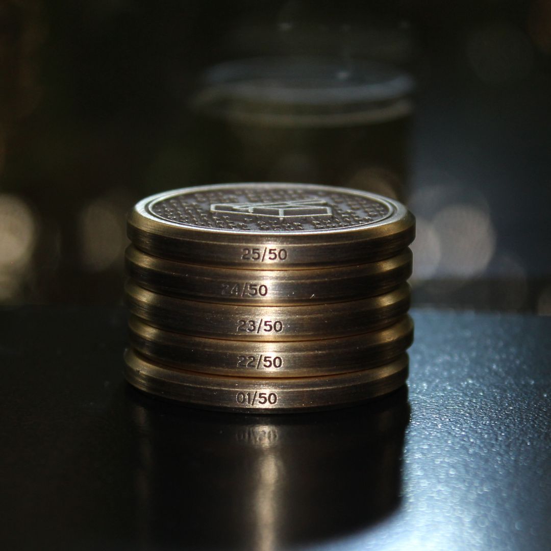 This high quality marker is made from Brass with clean machined edges and measures 32mm in diameter and 4mm thick.