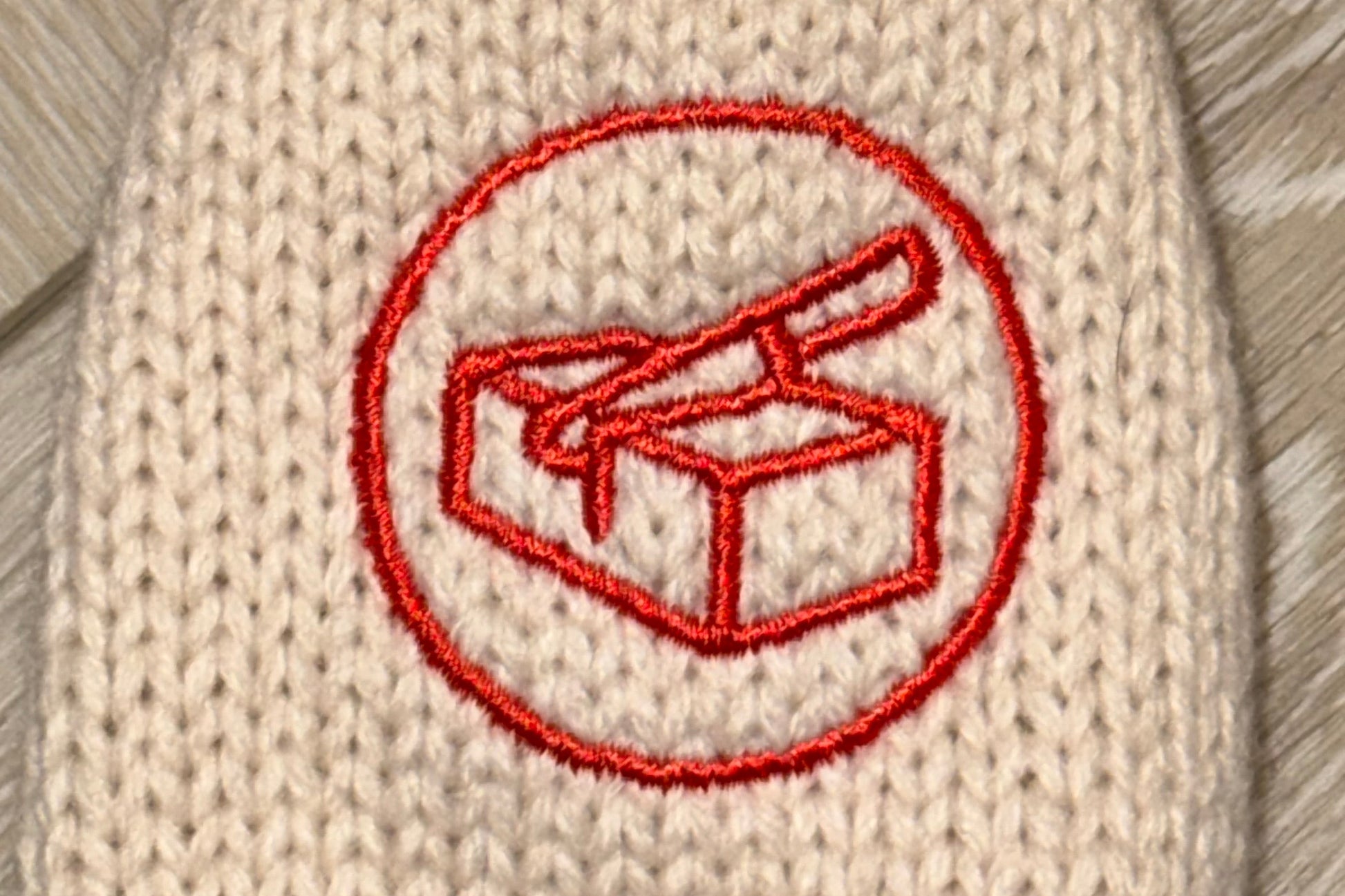 Premium knit head cover in rust (orange) and oatmeal with a block striped neck, and top tassel; featuring the "Butter Cut" icon embroidery on the head.